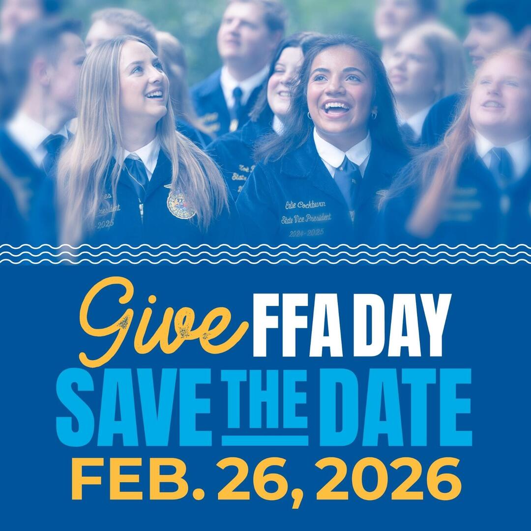 • Save the date! For 24 hours on Feb. 26, let’s support @NationalFFA on #GiveFFADay. Visit FFA.org/GiveFFADay to learn more and get involved!